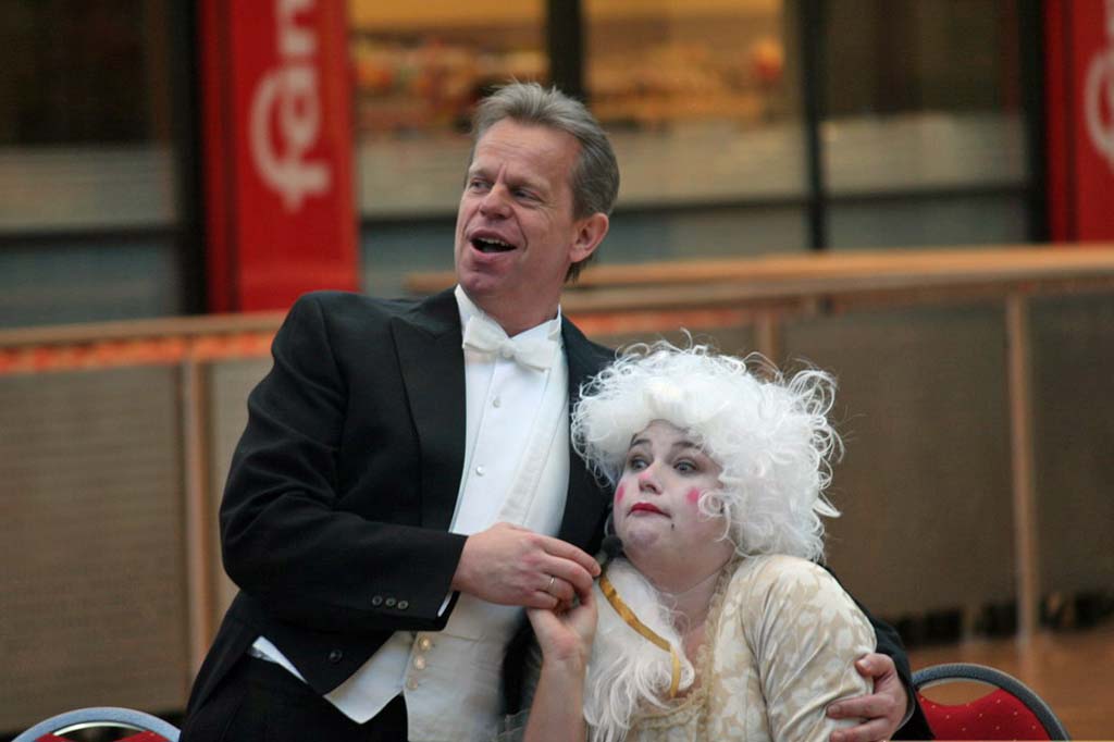 Rainer Weiss auf der Konzertbühne mit Clownin Nina Pohovski